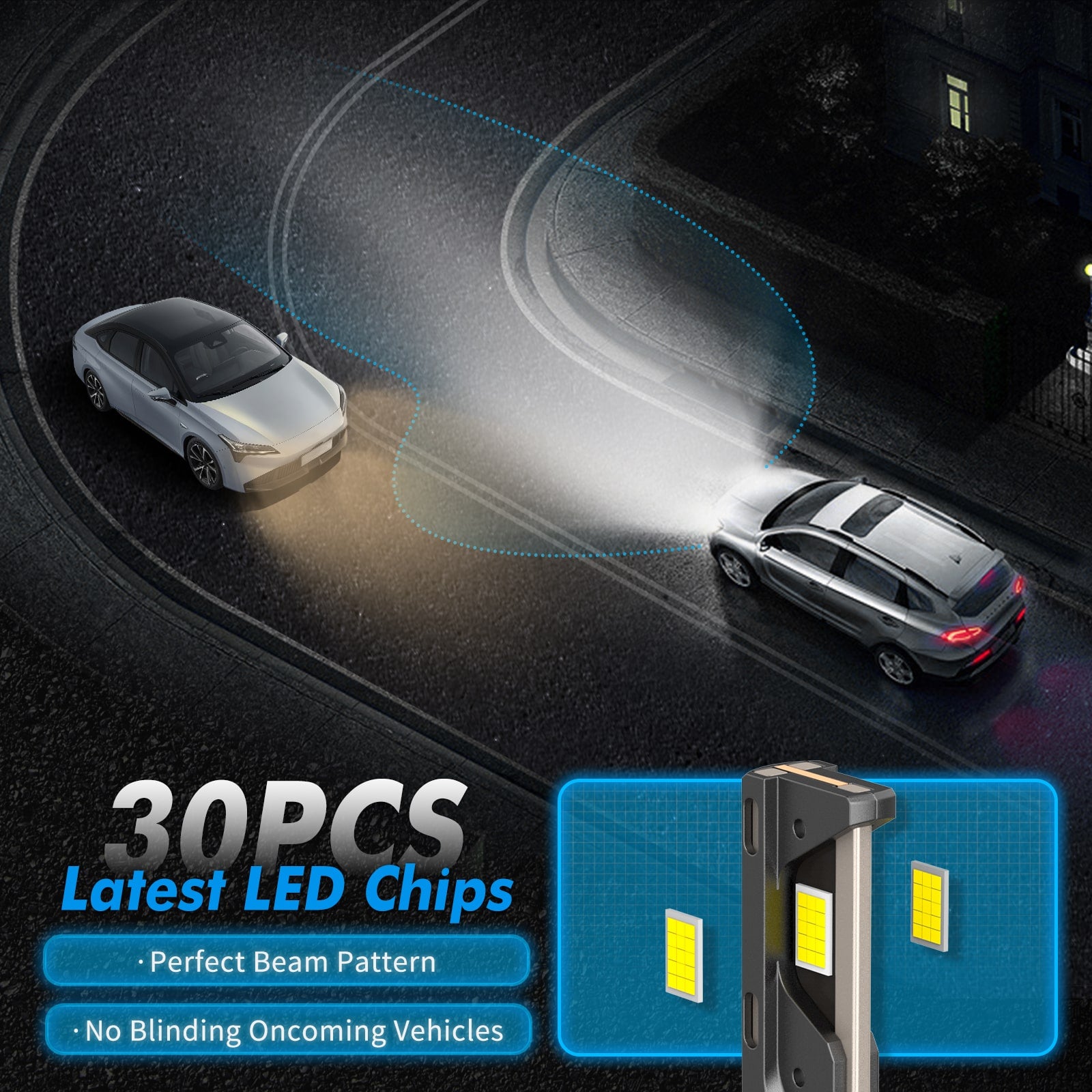 [400% High Brightness] BEVINSEE D40 LED bulb are equipped with the latest 30 CSP chips, achieving 8000LM/Set light output, Illuminate longer distances and wider areas, effectively avoiding danger.