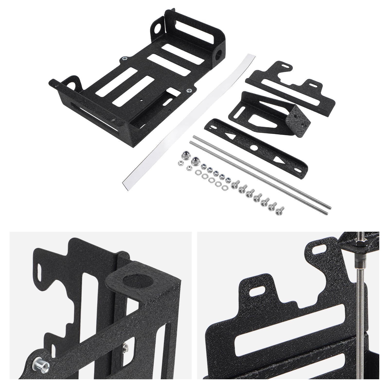 Nice.bracket but installation instructions lacking. Conplete temporary Removal of air box is necessary. Modification of the foot of the airbox is necessary ( grind a notch at the bottom so the bottom of the tray can sit at proper level. Then reinstall. Enjoy.