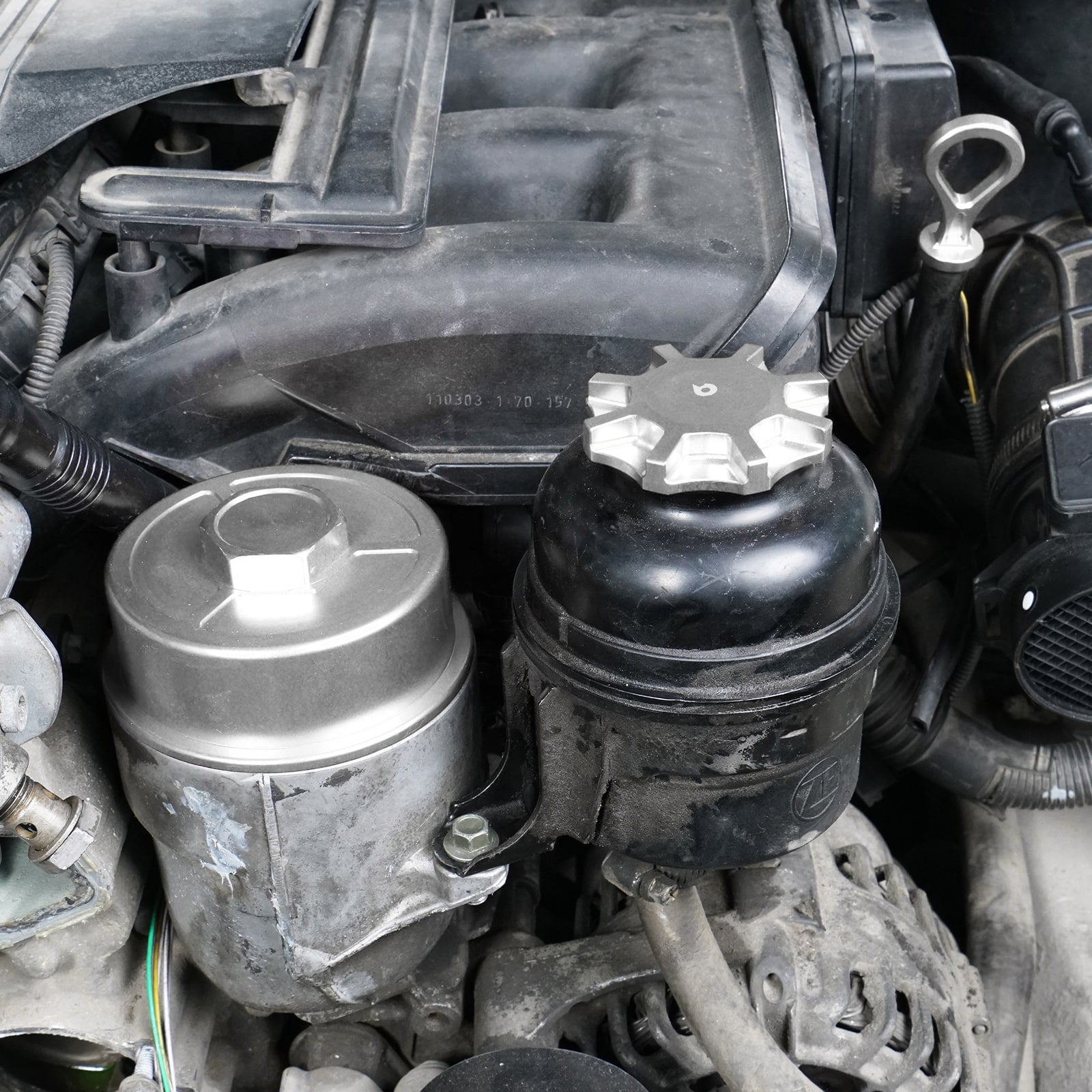 BMW has stuck with plastic power steering reservoir caps for several generations. No matter how they are used, over time these plastic caps can become excessively worn, especially if the power steering fluid is leaking, and for this reason we are introducing the new aluminium power steering reservoir caps!
